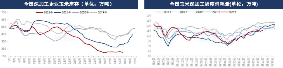 今年整體產銷缺口為明牌,農戶一直維持較強的惜售情緒,受此影響,產區現貨也一直保持緊平衡結構。當前南方銷區有建庫需求,深加工庫存低位,又將迎來淀粉備貨旺季,提價收購局面持續。盡管疫情對物流及生產均有影響,但供需錯配,持續推動現貨價格上漲。目前來看,今年售糧小高峰或不及往年,12月預計玉米價格仍將維持偏強結構。