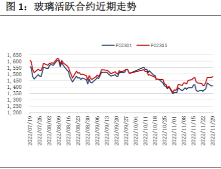 11月29日,合約震蕩偏強運行,FG2301合約收報1406元/噸,跌幅0.78%(-11),增倉12246手;FG2305合約收報1482元/噸,漲幅0.75%(+11),增倉21119手。