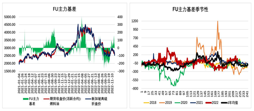 2、基差:新加坡高硫380燃料油折盤價2711元/噸,FU2301收盤價為2628元/噸,基差為83元,期貨貼水現貨;偏多。