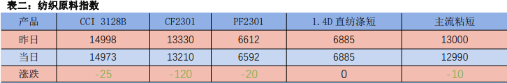 11月29日,CF01合約收盤價13210元/噸,CY01合約收盤價20575,CY09-CF09合約價差7365,處于中等位置,關注花紗套利機會。