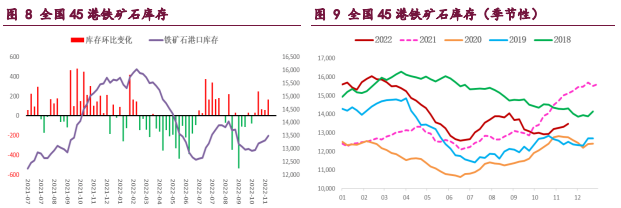 樂觀情緒再度發酵,疊加補庫預期,礦價強勢上行并領漲產業鏈,但礦石供需格局在走弱,直接體現就是庫存增加,鋼廠持續減產,礦石終端消耗繼續下降,樣本鋼廠日均鐵水產量和進口礦日耗環比下降,高位降幅顯著,而鋼廠虧損局面改善有限,疊加采暖季限產臨近,淡季鋼廠提產意愿不強,礦石需求維持低位,相對利好則是鋼廠春節前補庫強預期,但并無數據證實,高頻礦石成交和疏港量持續下降。與此同時,國內港口到貨環比下降,但依舊處于年內高位,但礦商發運同樣下降,主流礦商發運減量明顯,但目標產量驅動下減量難持續,相反按船期推算后續澳巴到貨將回升,疊加內礦供應恢復,礦石供應維持回升態勢。