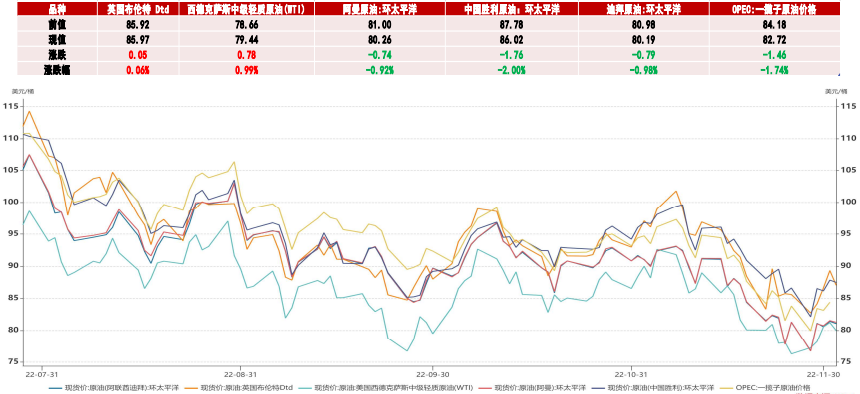 周中,美國能源部官員透露或尋求暫停出售戰略油儲,加之市場對于OPEC可能減產的期待,需求端上中國放松管制措施,油價有所回升。臨近周末,歐盟同意將俄羅斯石油的價格上限設定為每桶60美元,而OPEC改為線上會議或不會有減產措施,油價有所走低。