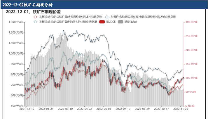 11月29日,58%Fe普氏價格指數為84.75美元/噸,較昨日上漲2.17%,62%Fe普氏價格指數為101.25美元/噸,較昨日上漲2.38%,65%Fe普氏價格指數為113.25美元/噸,較昨日上漲2.12%;11月29日,1個月新加坡掉期價格為100.78美元/噸,較昨日上漲2.69%,3個月為99.13美元/噸,較昨日上漲2.49%,6個月為97.30美元/噸,較昨日上漲2.54%,12個月為93.97美元/噸,較昨日上漲2.60%,23個月為88.84美元/噸,較昨日上漲2.73%。