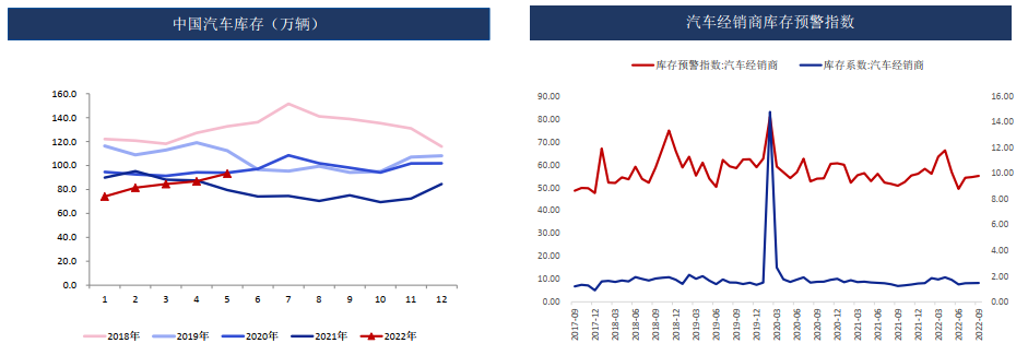 今年年初以來汽車庫存整體處于較低水平,后市小幅上漲;