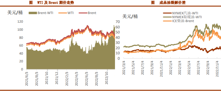 上周油價創新低后反彈。主要原因還是宏觀方面美聯儲放緩加息步伐。此外,OPEC+于2022年10月出臺減產計劃,油價一度企穩,但需求端的壓力最終驅使WTI油價于2022年12月第一周回到年初低位。