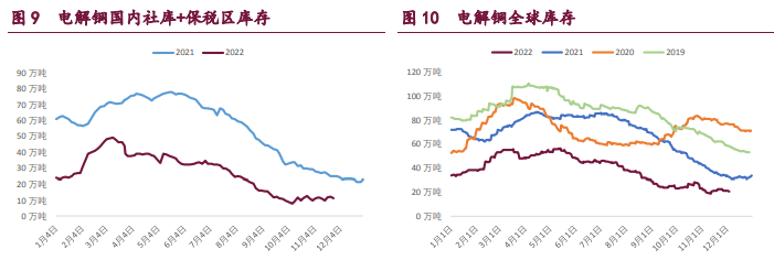12月5日,Mysteel電解銅社庫為9.59萬噸,較上周四去庫1.10萬噸,較上周一去庫0.65萬噸。12月5日,Mysteel電解銅保稅區庫存為1.55萬噸,較上周四去庫0.20萬噸,較上周一壘庫0.05萬噸。
