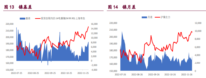 合約昨日夜盤沖高后回落,今天日內圍繞均線震蕩。基差收窄,月差小幅走強。消息面上,印尼政府將在12月1日對鐵出口關稅政策等展開討論,一定程度上刺激鎳價上行,但本次并未有實質性結果。產業上20萬以上的鎳價使下游替代消費明顯。技術面上,鎳價再度沖高至前期高點21萬一線,面臨明顯壓力,建議試空。