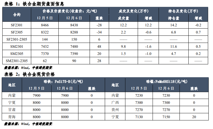 【一、鐵合金市場信息】
