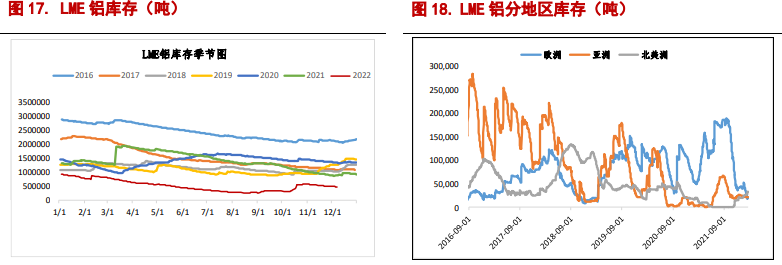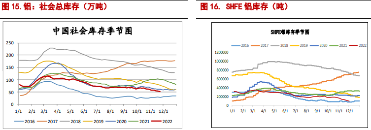 供應受限,正值枯水期,云南水電壓力大。上期所庫存持續去庫,目前處于五年同期低位,社會庫存緩慢去庫,供需結構短期仍在韌性,1-11月鋁材出口消費同比增長21.3%。但季節性淡季,受疫情、臨近春節等影響,下游一些消費企業提前放假,出現減產現象,開工率存在下降預期,消費難有亮點。短期內,歐盟尚未就限制天然氣價格達成一致,隨著進入嚴冬,歐洲地區天然氣價格快速上漲,短期海外成本尚有支撐。