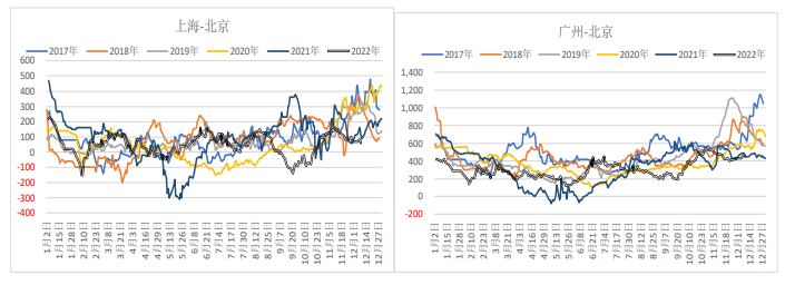 整體看,政治局會議結束后,后續宏觀博弈轉向中央經濟工作會議,經過11月以來持續上漲及政策大幅調整后,宏觀預期開始趨于一致,悲觀預期修復或困境反轉的行情或漸進尾聲,后續在經濟工作會議結束后,市場可能會階段關注現貨端,即供應回升及冬儲備貨情況。目前預期仍向好,大幅調整可能不會出現,月度級別鋼價仍在偏強的走勢中,但黑色系商品低位反彈較多,螺紋盤面正接近現貨高爐成本,鐵礦也回到高位區間,注意年底會議過后政策利多暫時出盡的風險,若參考過去6年螺紋基差區間,05合約高點或在3900-3950元附近,盤面轉向升水,多單注意盈利保護。