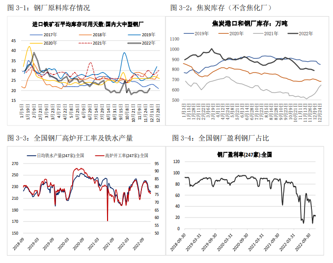 現貨市場上周五明顯走強,基差仍維持低位,盤面已升水北京現貨,成交穩定,臨近周末兩天日成交小幅放量。預期交易仍是核心,防疫政策持續轉變,跨地區流動不在查驗健康碼,6日召開政治局會議指出要堅持穩字當頭、穩中求進,繼續實施積極的財政政策和穩健的貨幣政策,房地產“三支箭”全部射出,市場情緒較為亢奮,遠月預期不斷改善,螺紋價格伴隨成本上移。現貨供需繼續轉弱,螺紋鋼產量增加,電爐開工率無變化,產能利用率略降,年底前減產政策不多,供應壓力仍有所體現。表觀消費繼續回落,社庫連續兩周增加,總庫存依然不高,但農歷已高于去年,庫銷比偏高。鋼材現貨仍是低庫存、低利潤和弱消費的狀態,進入淡季庫存同比優勢較之前幾周已經下降。