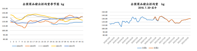 本周全國出欄平均體重為129.85公斤,較上周下調0.77公斤。當前受養殖戶壓欄及二次育肥影響,出欄體重仍在高位,但集團場存在提前出欄,體重略有下滑,后續大體重豬壓力依然較大。
