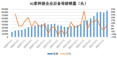 8月40家種豬企業后備母豬銷量85214頭,較上月環比增加7.31%。