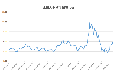 截至11月30日,全國大中城市豬糧比為7.97,上周為8.48。