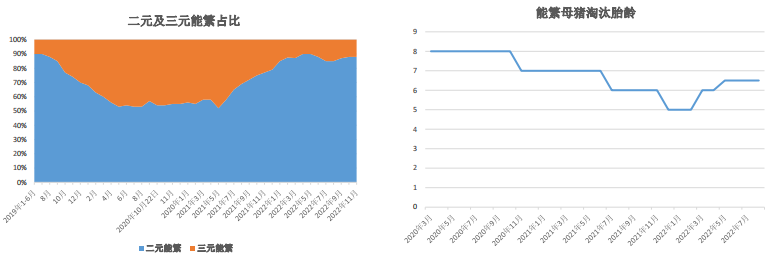 根據涌益咨詢數據顯示,當前市場二元、三元占比分別為88%與12%,二元及三元基本穩定在9:1的正常比例區間內。