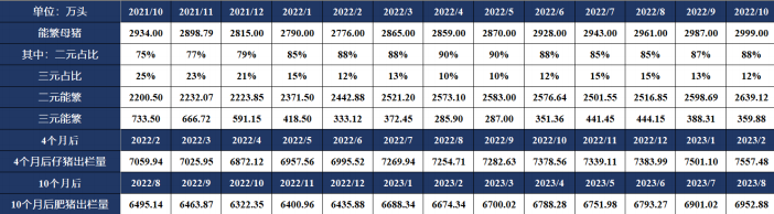 表格為根據農業部能繁母豬存欄測算的肥豬出欄量,由此可見未來生豬出欄量維持持續上漲格局。