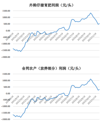 截至12月8日當周自繁自養養殖利潤均值為579.35元/頭,較上周524.66元/頭+54.69元/頭;外購仔豬潤為523.3元/頭,較上周475.46元/頭+47.84元/頭;放養利潤為299.95元/頭,較上周252.1元/頭+47.85元/頭。但周五起現貨價格暴跌,盤面利潤預計跟隨下滑。