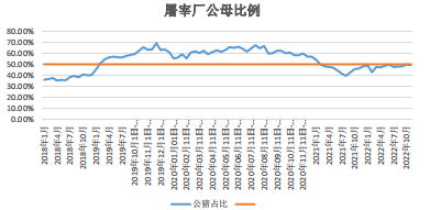 據農業農村部公布,2022年10月末能繁母豬存欄4379萬頭,相當于正常保有量的106.8%,產能大幅增加,環比增長0.4%,同比增長0.7%。