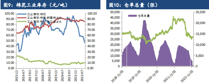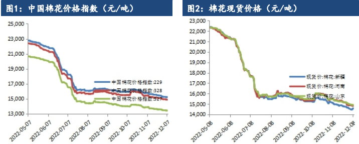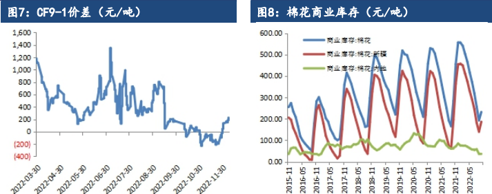 全球期末庫存維持累積趨勢,ICE主力合約盤中跌落80美分/磅,鄭棉震蕩偏弱運行。現貨方面最新棉花價格指數328級在14959元/噸,漲44元/噸。2022/23年度新疆機采3128B現貨一口價報價為13950-14150公定疆內庫。