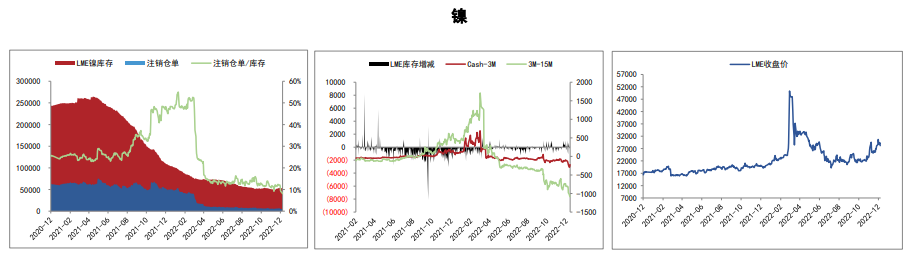 周三,LME鎳庫存增456噸,Cash/3M高貼水維持。價格方面,LME鎳三月合約價格漲0.64%,滬合約跌2%。
