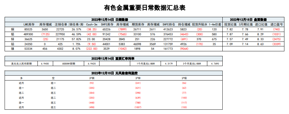 美國11月未季調CPI年率7.1%,前值:7.7%,預期:7.3%,數據持續回落且為2021年12月以來最小增幅。受美國通脹走弱影響,有色金屬普遍走強。
