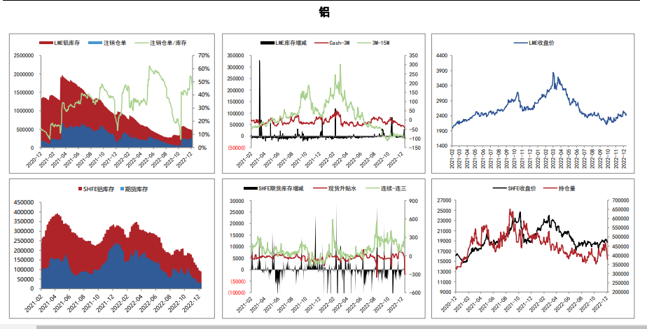 2022年12月12日,SMM統計國內電解鋁社會庫存50萬噸,較上周四庫存持穩,較11月底月度庫存下降1.6萬噸,較去年同期庫存下降41.6萬噸。電解鋁錠總庫存維持50萬噸,庫存目前還尚未出現累庫,但降幅有所放緩。