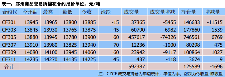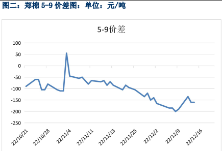 12月14日收盤,鄭棉2305-2309合約價差為-160元/噸,價差較上一交易日持穩不變。