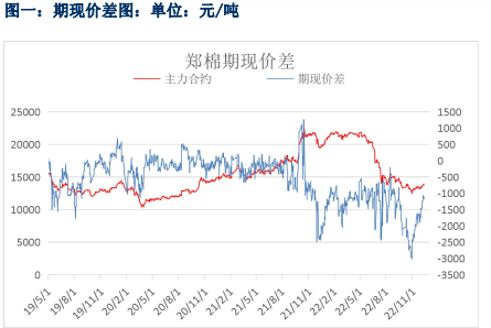 12月14日,鄭棉2305合約與CCI3128B指數期現價差為-1121元/噸,價差較上個交易日上漲3元/噸