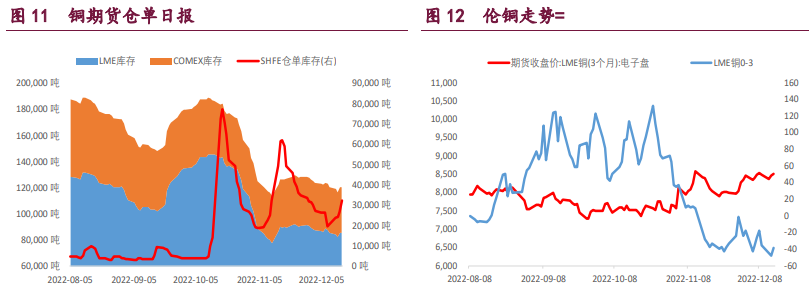 12月15日,智利銅業委員會(Cochilco)下調2022年銅價預估至3.98美元/磅,下調2023年銅價預估至3.70美元/磅;預計2022年智利銅產量將萎縮5.8%至530萬噸;預計2023年智利銅產量將增長7.5%至570萬噸。