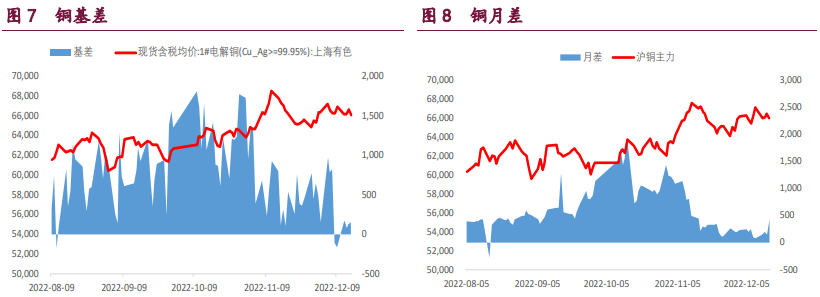 合約夜盤震蕩上行,早盤跳水后偏弱震蕩,圍繞65950一線震蕩。基差持穩,月差走強。美國通脹超預期改善,美元指數承壓下行,宏觀環境利好有色。國內疫情再度惡化,對當下需求或有影響,但整體預期樂觀。技術面上來看,滬主力站穩64000一線后再度上漲,月差走弱的背景下,可換月至2302合約多單持有。美國12月加息50BP落地,短期走勢上有利好兌現跡象短期提防銅價回落,但長期宏觀利好驅動上行不變。