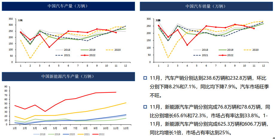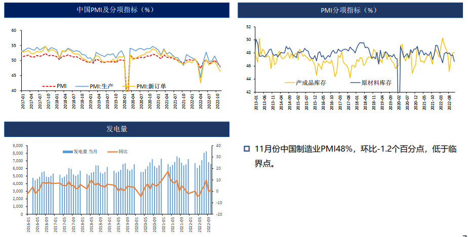 國內汽車產銷旺季不旺,地產偏弱,11月制造業環比下滑至榮枯線以下。