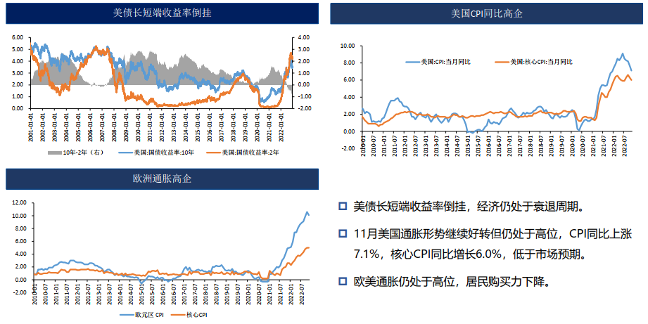 11月美國通脹形勢繼續好轉但仍處于高位,CPI同比上漲7.1%,核心CPI同比上漲6.0%,低于市場預期。美聯儲加息預期放緩,但當前或價格已有反應。