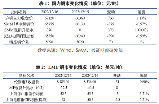 庫存方面,截至 12 月 16 日,SMM 全國主流地區銅庫存環比周一減少 1.37 萬噸至 9.43 萬噸,較上周五減少1.05 萬噸。