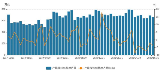 需求方面,本周塑料下游行業綜合開工率較上周增加 0.23%,其中農膜開工較上周減少0.18%,管材開工較上周持平,中空開工較上周增加 0.97%,注塑開工較上周減少0.24%。目前棚膜需求轉弱、地膜需求逐漸釋放,部分地膜企業受到規格不確定性,生產較往年偏弱。膜企需求跟進緩慢,訂單少量積累。終端需求較為疲軟,企業為降低倉儲成本,減少成品庫存累積,按需生產。塑編企業開工較上周持平,同比去年下滑,塑編企業訂單情況兩級分化嚴重,編織袋企業訂單一般。總體來看,雖然目前防疫政策放寬利導致物流影響減弱利好下游需求,但終端實際需求并沒有好轉。