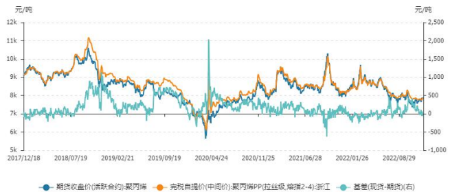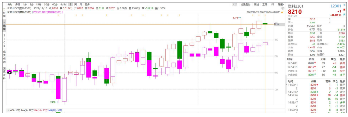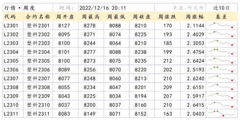 本周聚烯烴板塊兩個品種偏強震蕩,基差持續走弱,注冊倉單處于低位。近期宏觀利好支撐大宗商品低位反彈,行情穩步抬升。隨著防疫措施逐步優化,市場資金熱炒復蘇預期,疊加因臨近春節和合約交割,部分貨源流通偏緊支撐盤面短期走強。