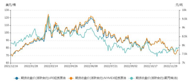成本方面,美聯儲 12 月結束激進加息,也表示加息進程不會很快終結,溫和的加息短期利多油價。另外,俄烏和伊朗問題仍在僵持。近期油價完成三連漲,終結了此前因經濟衰退憂慮導致的持續下行,加劇的下行風險暫告段落,但供需預期利好和宏觀前景偏弱之間仍存在博弈,但最近市場交易供需邏輯偏多,預計偏強的原油走勢對于下游化工品仍存在一定支撐。