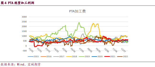 基差來看,今日PTA現貨基差參考2301合約升水85-90自提。