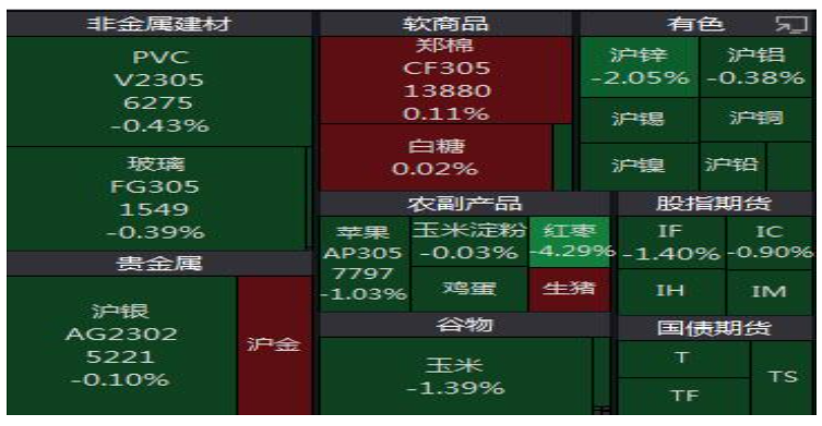 注:色塊面積由合約成交量確定,顏色由合約漲跌幅確定