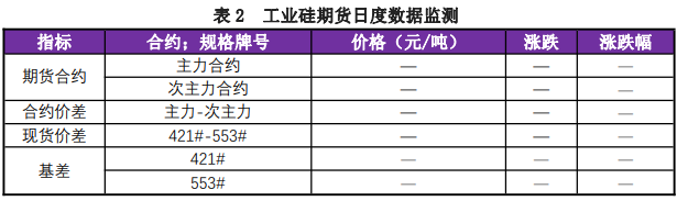 庫存方面,工業硅行業庫存與上周持平,約 210070 噸;三地港口庫存與上周持平,約113000噸;工廠庫存與上周持平,約97070噸。