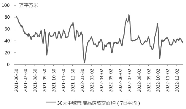 地產方面,12月地產銷售依舊偏淡。從30大中城市商品房成交面積看,12月同比仍然維持負增,尤其是上周以來跌幅進一步擴大,說明需求端受到的影響較大。前期“金融十六條”“地產三支箭”等政策從供給端提供支持,但需求側的修復仍需等待。