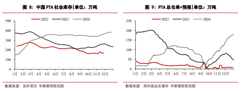 (1)單邊:觀望。TA開工處于低位,供需兩縮背景下,TA現實庫存仍處于低位,累庫周期往后推至一二月份。PX檢修雖有增加,但新增產能投產壓力下持續快速累庫預期。