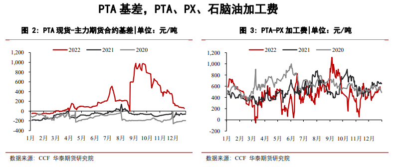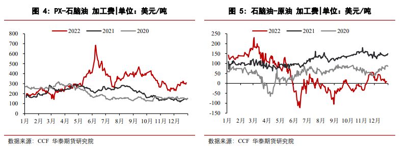 PX方面。PX加工費310美元/噸,PX加工費仍偏高估,關注后續新裝置提負后的累庫壓力。