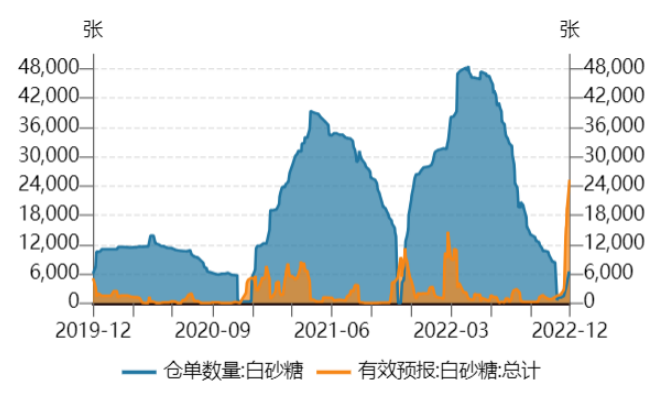12月28日,鄭糖倉單數量為6606張,較昨日增加120張;有效倉單預報25253張,較昨日增加2690張。