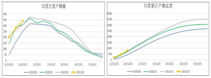 印度:印度糖廠協會(ISMA)表示,2022/23榨季截至12月15日,印度食糖產量達到821萬噸,同比增加5.4%。