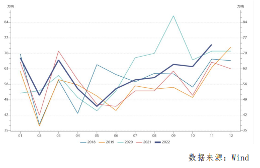 海外正值旺產期,11月中國天然橡膠進口呈現了季節性上漲態勢,同比處于往年最高水平,12月進口總量預計也將處于偏高區間,相對應的港口庫存連續8周累庫,社會庫存連續多周處于累庫態勢,整體供應壓力中期不減,整體供應端壓力中期不減。