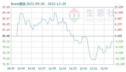 12月28日Brent原油商品指數為82.06,較昨日上升了0.17點,較周期內最高點124.02點(2022-03-09)下降了33.83%,較2020年04月22日最低點19.29點上漲了325.40%。(注:周期指2014-09-01至今)