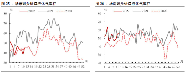 5.進口:本期進口氣內銷利潤下滑,進口液化氣內銷理論利潤平均水平約-70元/噸左右。本周華南進口利潤波動,主要受到現貨價格的波動影響。需求疲軟和下月進口成本下行貫穿本周市場,現貨價格不斷走低。新冠感染病例數居高不下,不但打擊下游需求,同時隨著企業員工和運輸司機感染,進而影響運輸和企業裝車能力等,市場情緒多悲觀,價格重心下移。
