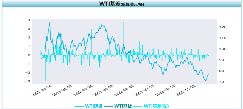 需求端, IMF預計2023年多達三分之一的經濟體面臨衰退,中美等國PMI數據依然不佳,同時歐洲氣溫高于季節性正常水平,天然氣大跌拖累原油價格,歐洲天然氣價格跌破俄烏沖突爆發之初水平,原油下游自身的取暖油需求也不及預期。需求不佳下,原油仍將承壓,偏弱震蕩。