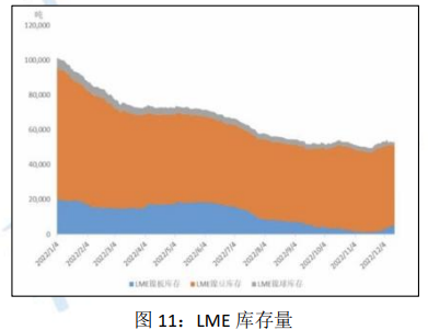 第三階段(9-12 月)9 月初,印尼計劃征收關稅消息擾動及復產預期回升,對鎳價形成一定提振,在資金炒作下,鎳價大幅回升。期間美聯儲官員鷹派言論造成期價出現較大回調,但又有俄鎳供應擾動,在低庫存支撐下,鎳價高位寬幅震蕩運行為主。進入 11 月后,伴隨國內防疫政策調整、美聯儲放緩加息預期、lme 不對俄鎳進行制裁等刺激鎳價持續上漲。最終價格維持高位震蕩中。