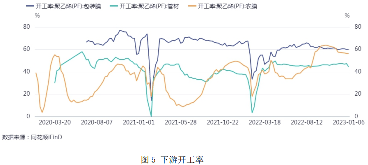 油價本周整體下行。12 月 OPEC 原油產量小幅回升,致使近期油價明顯回調。美聯儲表示 23 年內預計不會開始降息,市場加重原油需求擔憂。美國極寒天氣影響煉廠開工進度,中國疫情緩和,物流和出行量已經逐漸恢復,近月需求可能面臨上調。三大機構預計明年俄羅斯產量將顯著下滑,原油供應仍偏緊,隨著國內疫情政策優化,中長期來看,明年下半年中國需求有望變得更加繁榮穩定,原油將呈現供應偏緊格局。因此,預計塑料價格也將隨原油維持震蕩偏強格局。